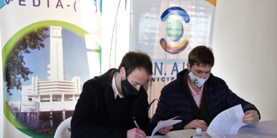 Ferraris firmó un convenio con el Ministro de Hacienda y Finanzas de la provincia, Pablo López, para la compra de maquinaria vial