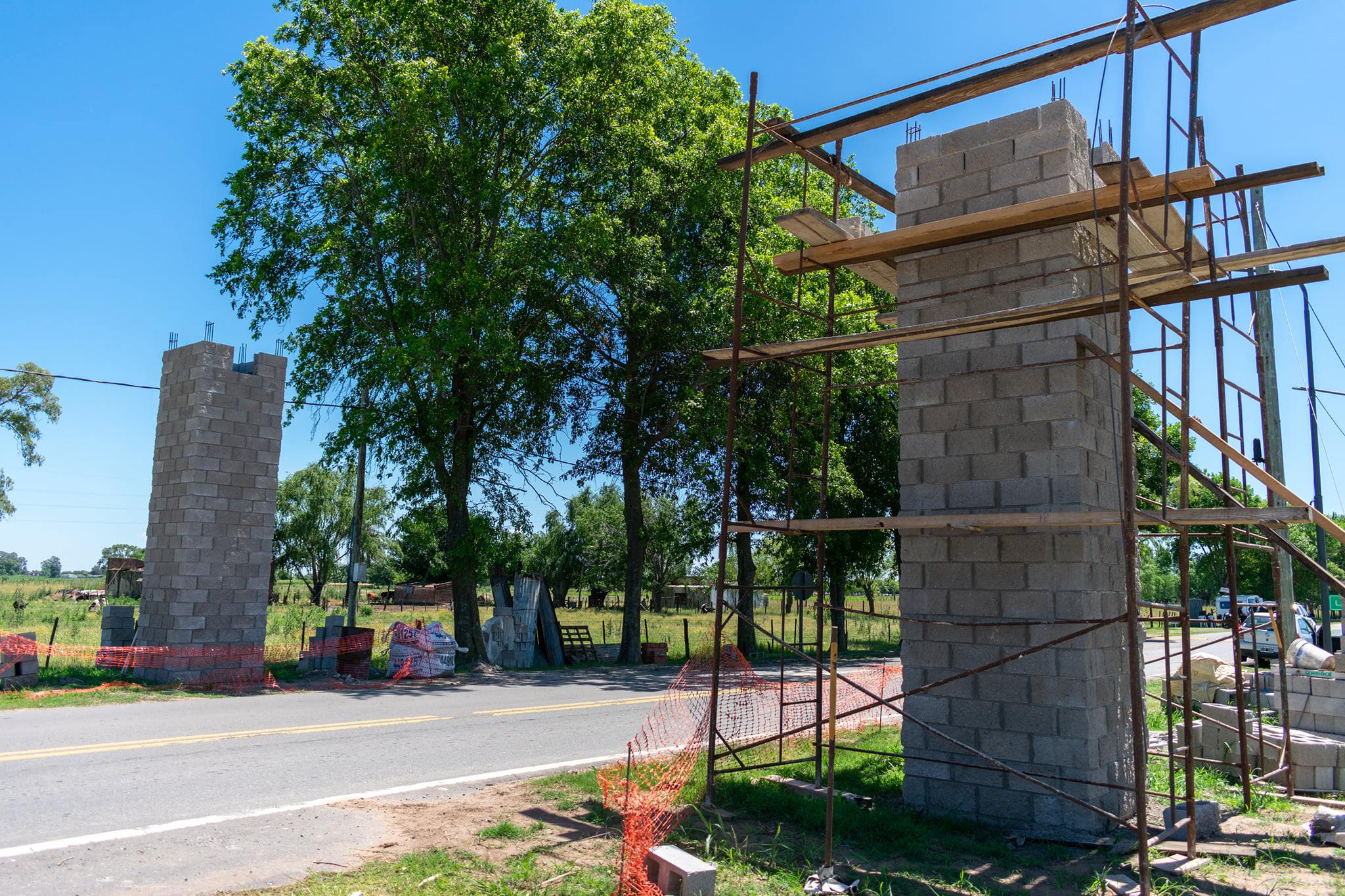 La obra que se está realizando en el acceso de la localidad está llegando a la parte final. Con las columnas prácticamente terminadas, solo restan algunos detalles y la colocación de la viga superior. Próximamente se concluirá con la obra y se logrará que todos los pueblos tengan su portal de ingreso.