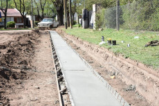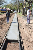 Trabajadores municipales se encuentran realizando labores correspondientes a la construcción de cordón cuneta en la calle Maldonado de la localidad de Vedia.