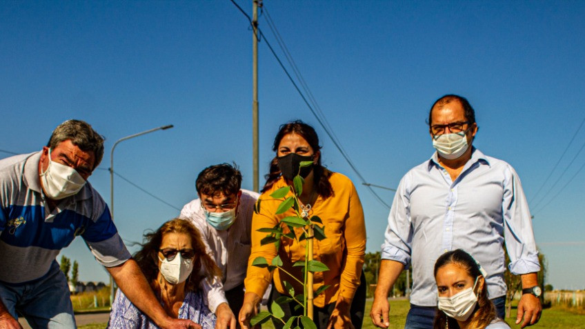El pequeño acto en el que se plantó un árbol, se llevó a cabo en el Acceso Centenario, frente a la Plazoleta de la Salud de Juan B. Alberdi, allí estuvieron presentes el Delegado Municipal, Darío Zapata, la Concejal Susana Rivadaneyra, en representación de Producción, Ambiente y Economía Social, Patricio Garro, Yanina Pernas por Cultura y Turismo, Jóvenes y representantes del Grupo Envión.