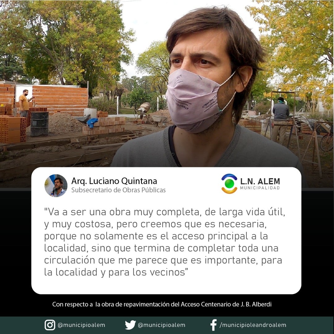 Declaraciones del Subsecretario de Obras Públicas de la Municipalidad de Leandro N. Alem, Arq. Luciano Quintana, con respecto a la Obra de Repavimentación del "Acceso del Centenario" en Juan B. Alberdi.
