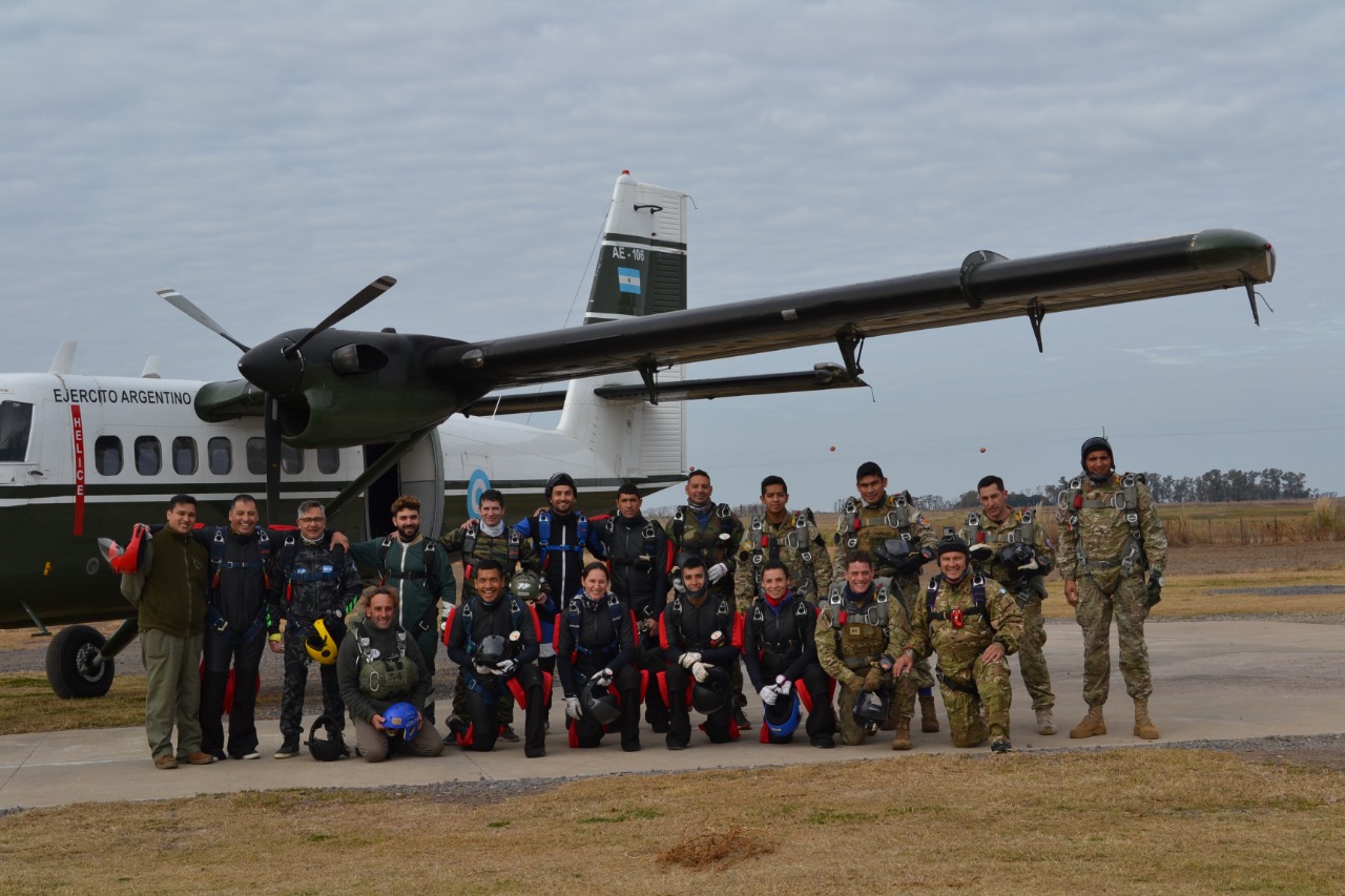 Un 29 de Mayo, ahí nomás de la Revolución de 1810, y ante la necesidad de la Primera Junta de Gobierno de contar con tropas nacionales, se dio nacimiento formal al Ejército Argentino. A modo de celebración de sus 212 años de vida, se reunieron en la institución local que suele recibirlos periódicamente, para realizar una serie de entrenamientos de salto en paracaídas, a los que se sumó también la Armada y paracaidistas de la región. Los vuelos se realizaron en un Twin Otter (“Doble Nutria”), un bimotor de fabricación canadiense que forma parte del Comando de Aviación del Ejército Argentino. El tren de aterrizaje triciclo fijo, sus habilidades STOL (despegue y aterrizaje cortos) y su relativamente alta tasa de ascenso lo han convertido en un exitoso avión de carga, de pasajeros regional y de evacuación médica (MEDEVAC). Además, el Twin Otter es popular en las operaciones de paracaidismo, disponiendo de una capacidad para 22 saltadores (una carga relativamente grande respecto a otros aviones). Actualmente, el Twin Otter es usado en paracaidismo en Suecia, Finlandia, Noruega, España, Australia, Estados Unidos, Chile y Perú. Los entrenamientos duraron todo el fin de semana, brindando un gran espectáculo a quienes se acercaron a verlos. Y los que no pudieron ir, no se preocupen, esta es la primera de muchas otras sesiones de salto que habrá. A preparar el equipo de mate, y los más valientes, las ganas de saltar!