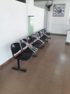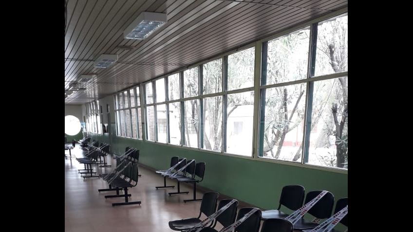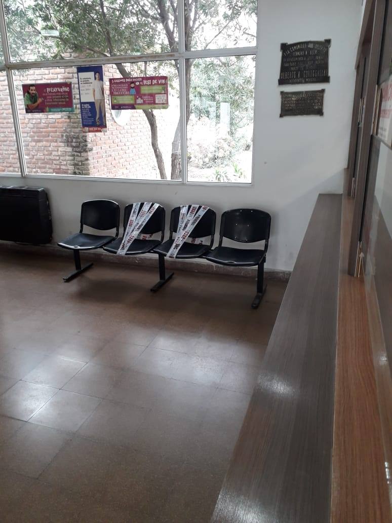 Trabajadores del Hospital Municipal trabajan para garantizar el correcto distanciamiento social entre las personas que concurran al centro de salud.