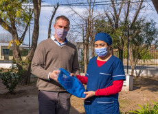 En su visita a la dependencia municipal, el Intendente Municipal, Prof. Carlos Ferraris, acompañado del Secretario de Gobierno, Martín Moris, Jefe de Personal, Daniel Pica, titular de IPS, Facundo Quinteros, realizó la entrega de los ambos para todo el personal del asilo de ancianos, quienes se mostraron muy agradecidos.