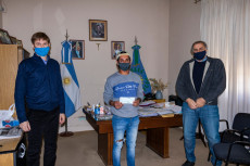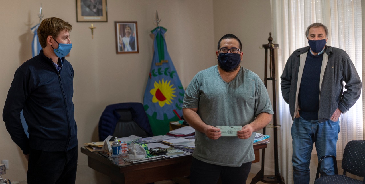 El Intendente Municipal, Prof. Carlos Ferraris, acompañado por el Subsecretario de Producción, Medio Ambiente y Economía Social, Juan Zitti, hicieron entrega de nuevos créditos económicos a emprendedores del distrito a través del Fondo Municipal de Emprendedores Productivos con el fin de reactivar e impulsar las actividades económicas que se ven afectadas como consecuencia de la pandemia de Covid-19.