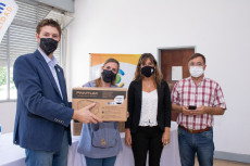 La entrega se realizó hoy, en horas de la mañana, en el Palacio Municipal, donde estuvieron presentes el Jefe Comunal, acompañado por la Inspectora Jefe Distrital de Educación, María Virginia Sábato, el Secretario de Desarrollo Humano Fernando Girón y los referentes de las 9 instituciones educativas.