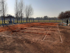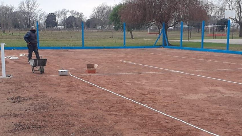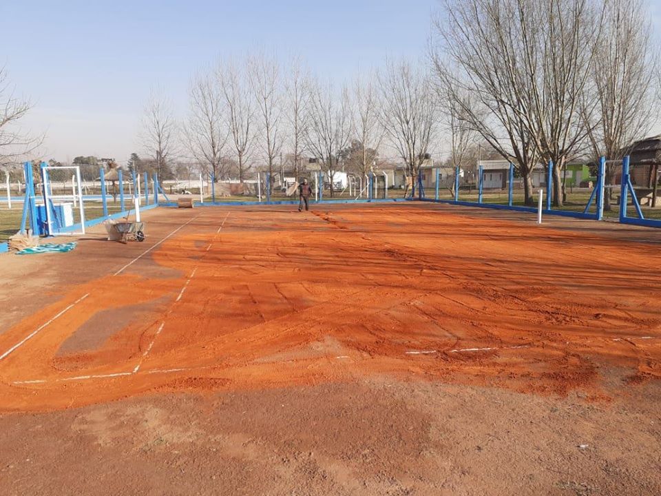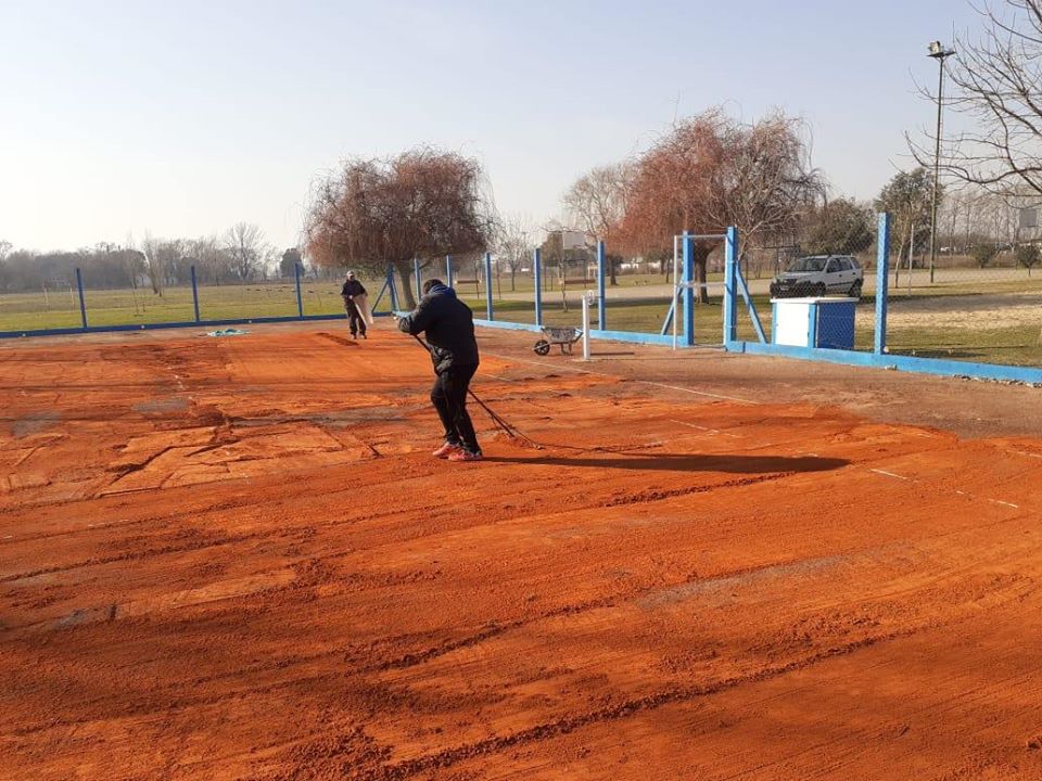 Trabajadores municipales de la localidad de Leandro N. Alem estuvieron poniendo a punto la cancha de tenis del polideportivo municipal. Realizaron el cambio de polvo de ladrillo, cambiaron los flejes y solo resta la colocación de la red. De esta forma, la cancha estará lista para poder realizar esta actividad, la cual está permitida por el Comité de Crisis, desde que nuestro distrito ingresó a Fase 5.